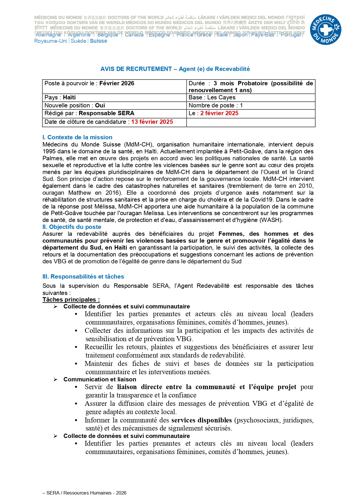 NB : La plateforme EPS Caraïbes ne fait que relayer les offres d'emploi de l'institution et elle n'a aucune implication dans le traitement et la sélection des dossiers du(es) Candidat(es) ! Merci de suivre les instructions et d'acheminer directement vos candidatures auprès de l'institution qui recrute pour ce poste, en suivant les informations données dans la partie descriptive du présent poste !