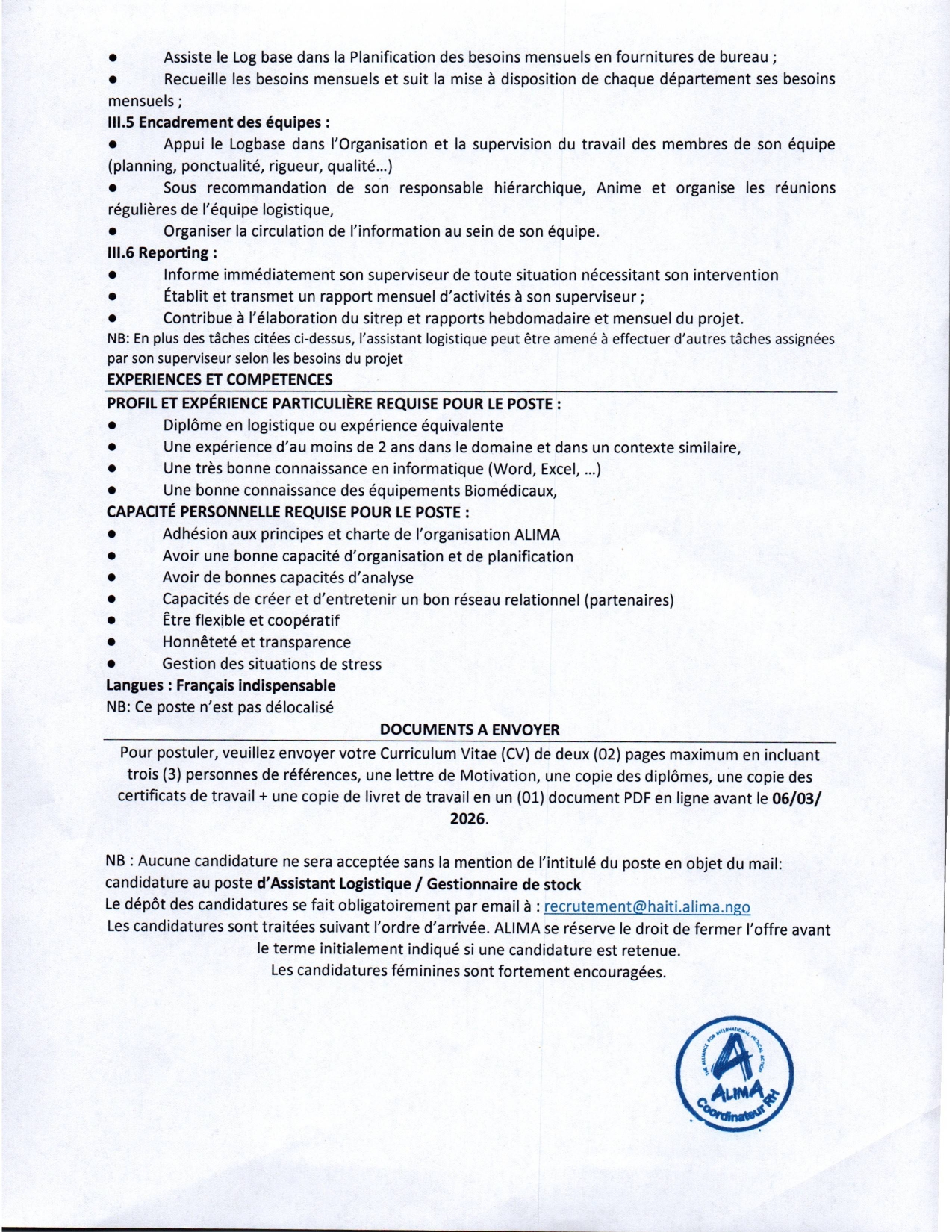 NB : La plateforme EPS Caraïbes ne fait que relayer les offres d'emploi de l'institution et elle n'a aucune implication dans le traitement et la sélection des dossiers du(es) Candidat(s) ! Merci de suivre les instructions et d'acheminer directement vos candidatures auprès de l'institution qui recrute pour ce poste, en suivant les informations données dans la partie descriptive du présent poste !