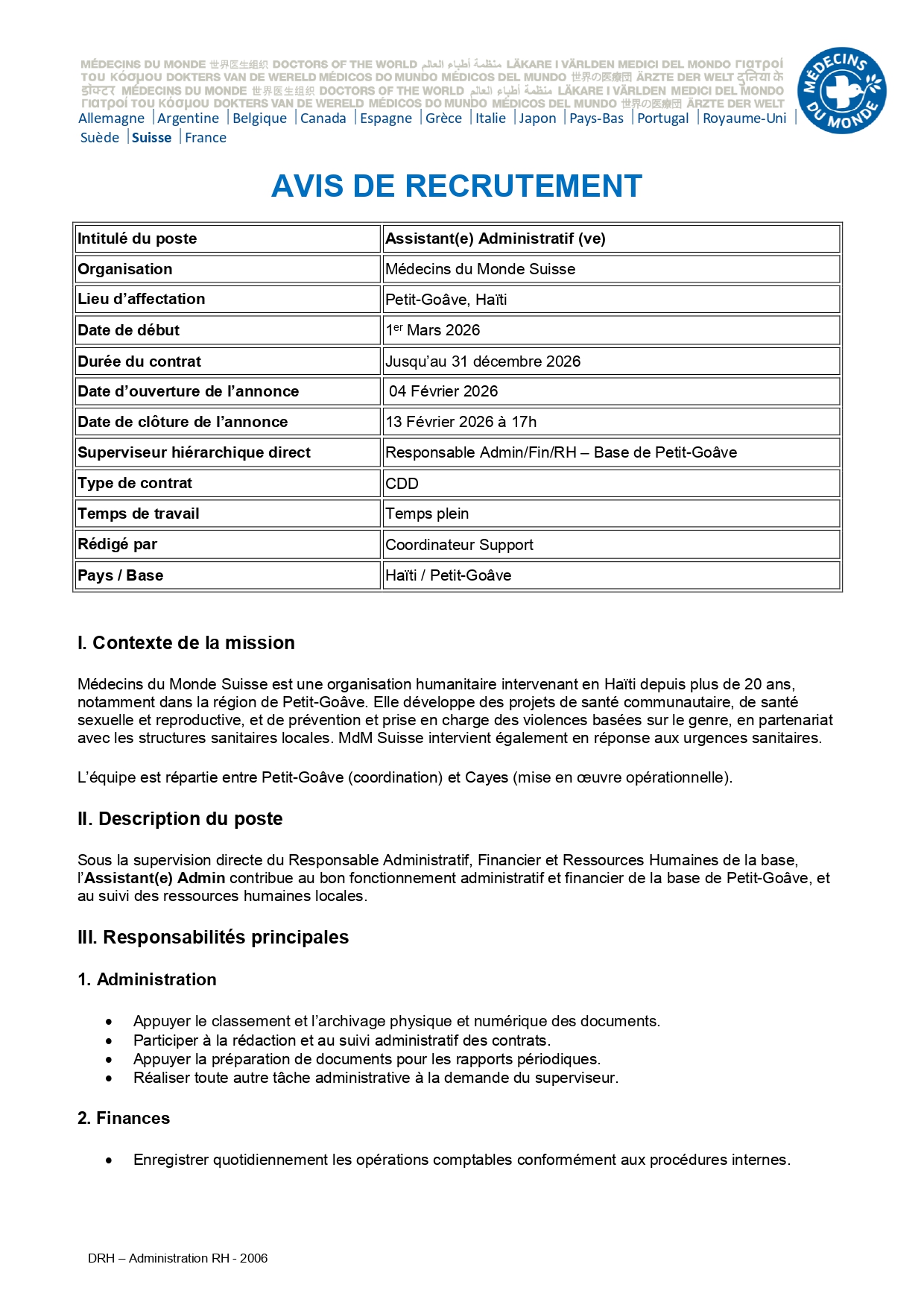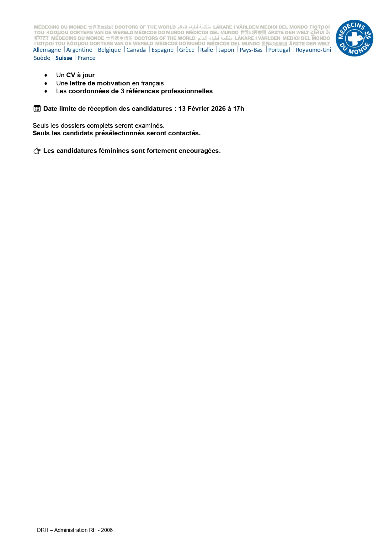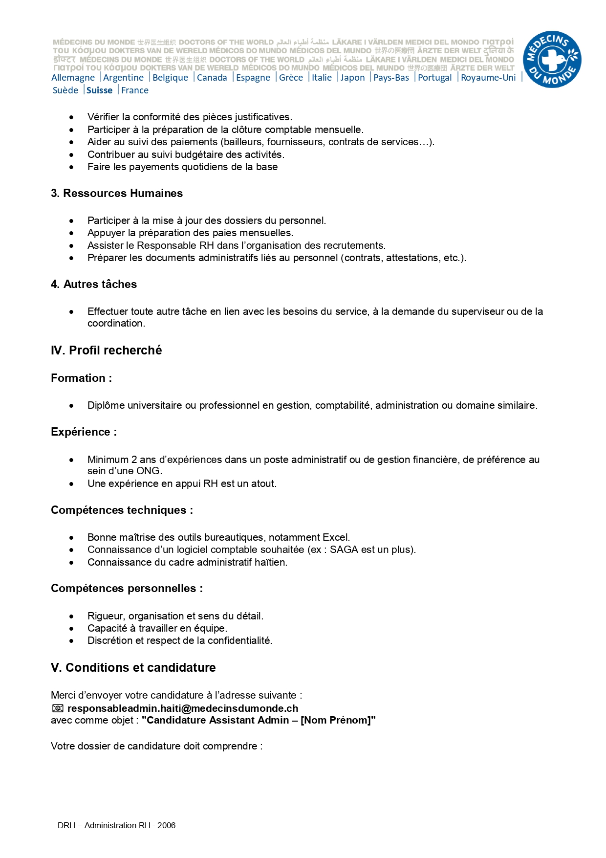 Minimum 2 ans d’expériences dans un poste administratif ou de gestion financière, de préférence au sein d’une ONG.