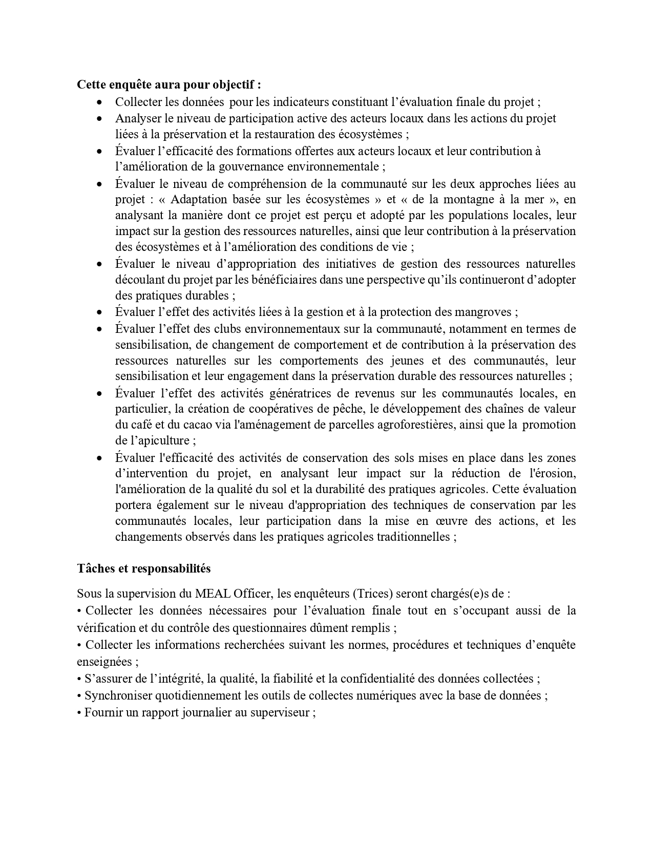 Cliquez sur la partie photo ci-dessus, pour prendre connaissances des TDR du poste !