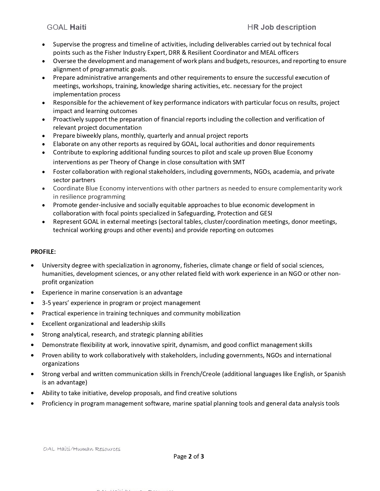 University degree with specialization in agronomy, fisheries, climate change or field of social sciences, humanities, development sciences, or any other related field with work experience in an NGO or other non-profit organization