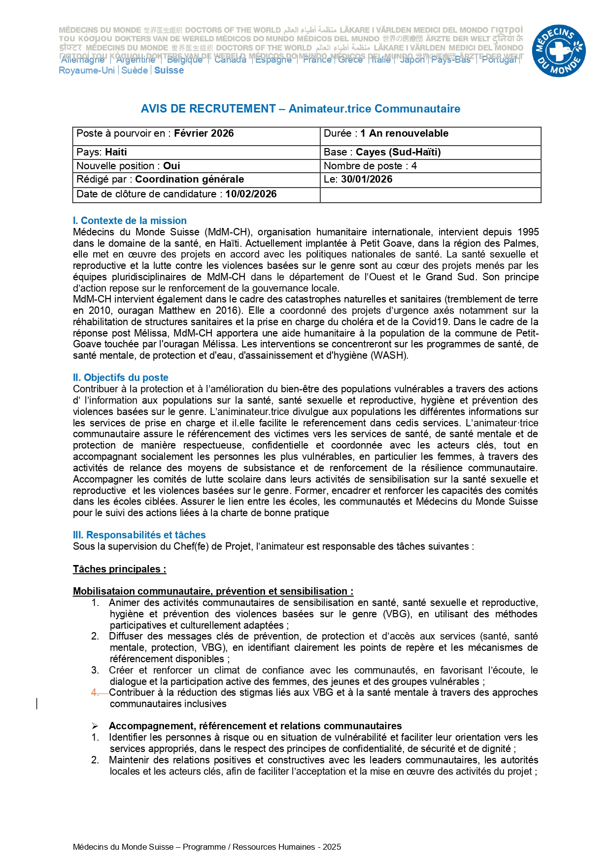 NB : La plateforme EPS Caraïbes ne fait que relayer les offres d'emploi de l'institution et elle n'a aucune implication dans le traitement et la sélection des dossiers du(es) Candidat(es) ! Merci de suivre les instructions et d'acheminer directement vos candidatures auprès de l'institution qui recrute pour ce poste, en suivant les informations données dans la partie descriptive du présent poste !