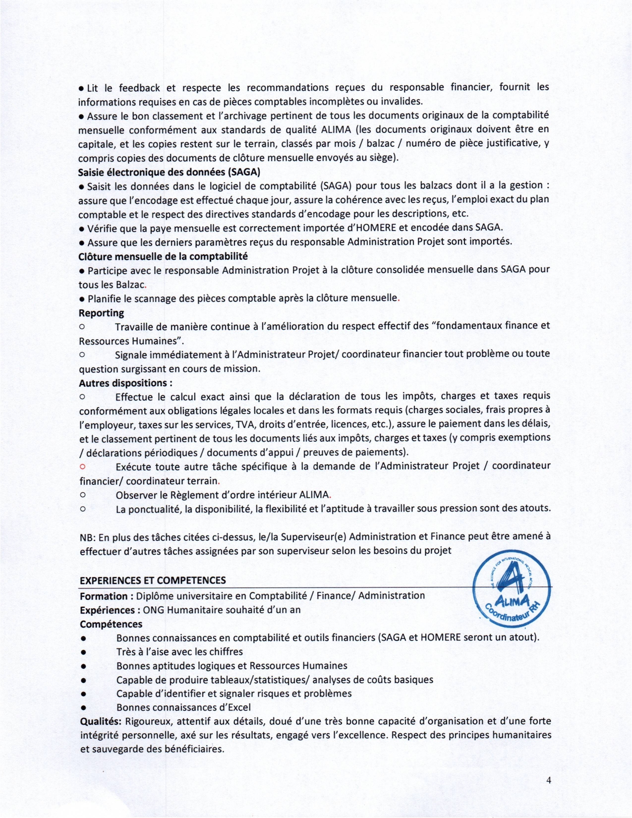 Informations sur le poste