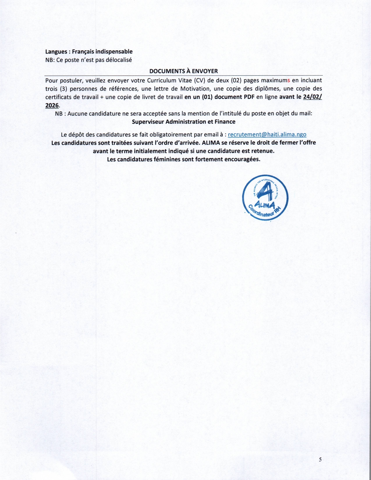 NB : La plateforme EPS Caraïbes ne fait que relayer les offres d'emploi de l'institution et elle n'a aucune implication dans le traitement et la sélection des dossiers du(es) Candidat(s) ! Merci de suivre les instructions et d'acheminer directement vos candidatures auprès de l'institution qui recrute pour ce poste, en suivant les informations données dans la partie descriptive du présent poste !